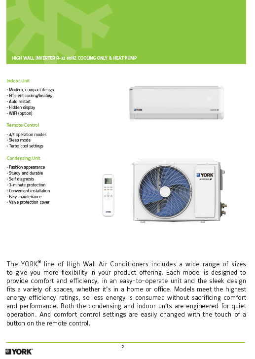 AIRE ACONDICIONADO MARCA YORK DE 24.000 BTU/H, INVERTER DE ALTA EFICIENCIA ENERGETICA SEER 17 CARATULA BLANCA, TIPO MINI SPLIT DE PARED ALTA, MODELO YHJF24YJ6AXSO-X / YHJF24XJ6AXS-RX, GAS REFRIGERANTE R32