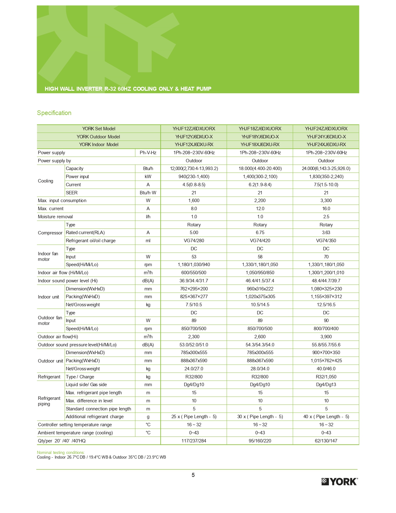 AIRE ACONDICIONADO DE 18.000BTU MARCA YORK SEER 21 INVERTER REFRIGERANTE R32